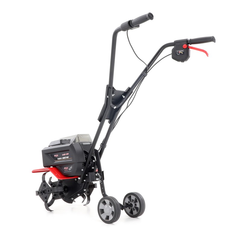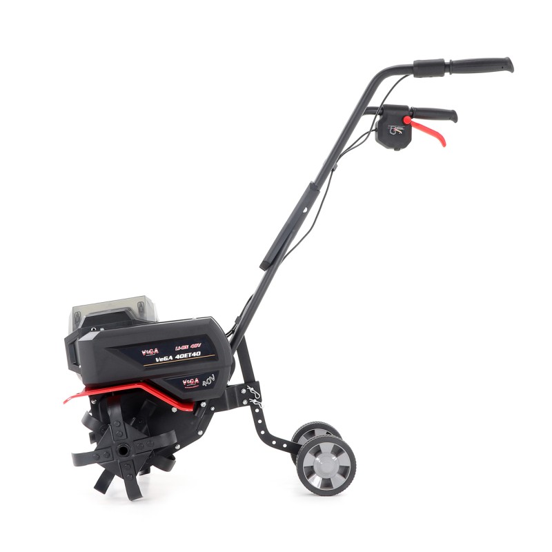 VeGA 40ET40 - AKU kultivátor s elektrickým motorem 800 W je ideální pomocník pro menší až střední zahrady, zeleninové záhonky, skleníky, květinové záhony v předzahrádkách. Kultivátor je kompaktní a díky transportním kolečkům snadno ovladatelný a transportovatelný, práci s ním hravě zvládnou i ženy. Ušetří spoustu času a tvrdé práce při přípravě záhonu, velmi snadná obsluha. Je to výborný pomocník při kypření půdy, při úpravě půdy před setbou a zapravování drtě, hnojiva, kompostu nebo rašeliny do půdy.